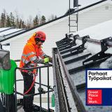 “Myyntineuvottelija oli palveluhenkinen ja kävi mm. katolla paikkaamassa uretaanilla vaurioituneen lumiesteen siheuttaman reiän. Asentaja oli myös seurallinen ja rännit löysivät paikkansa luontevasti!